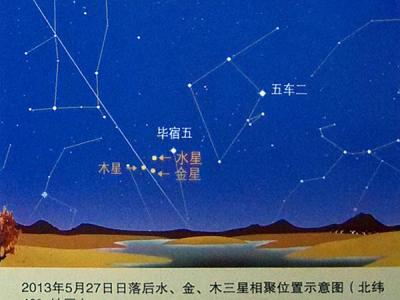 5月27日三星相聚 水星非常靠近太阳,我们可以观测的机会很少;金星,可观测时间...