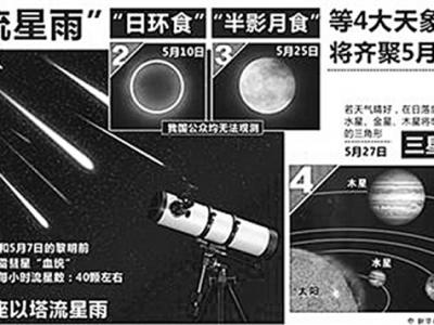 新闻缘起: 江苏、天津两地天文学会通报,五月公众可赏金星最亮、宝瓶座厄塔流星雨...
