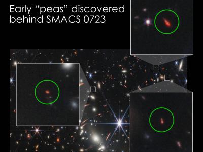 詹姆斯韦伯太空望远镜拍摄的星系团SMACS 0723的深部图像中捕获的三个微弱物体(圈出...