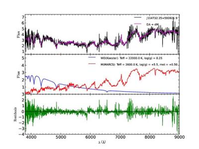 图为LAMOST发现的白矮-主序双星光谱示例图及光谱分解图 据中国科学院国家天文台...