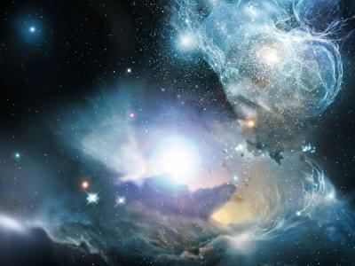 科学家并不确定第一批恒星是如何形成的。这副艺术家印象图描绘了一个原始星系被星...