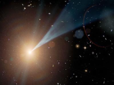 这位艺术家的概念展示了一个假设的事件,称为超千新星。一颗大质量恒星在超新星爆炸...
