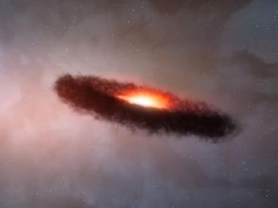 艺术家绘制的Rho-Oph 102天体系统周围致密尘埃盘,其中或正在形成“小地球” 科...
