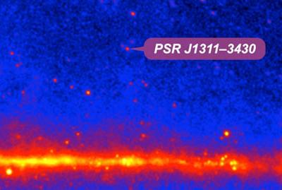 天文学家在人马座中发现一个运行速度奇快的毫秒脉冲星PSR J1311−3430(uux....