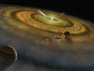 艺术家绘制的绘架座β星系统想象图 科学家发现遥远恒星周围出现神秘的彗星群,其...