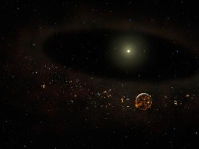 艺术表现恒星北落师门环绕盘中两个行星相撞的过程。图片来源:uux.cn托马斯·穆勒(...