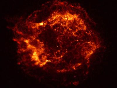 这是仙后座A,一个超新星爆发遗迹。最新研究显示,一次与此相类似的超新星爆发事...