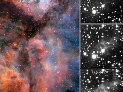 天文学家正在利用附近尘埃云团捕获的光“回波”,观察不稳定的庞大双星系船底座伊...