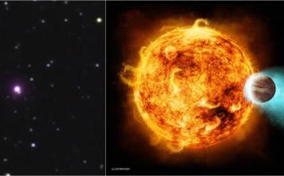 这张配图中左栏是真实的CoRoT-2a图像,右栏则是近距离观察想象图,可以看到围绕它...