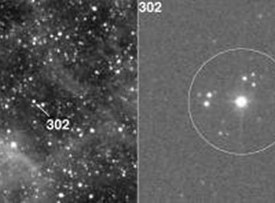 左图为地面观测站拍摄的Star 302,右图为哈勃拍摄的Star 302 通过对Star 302的观...