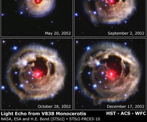 V838 Monocerotis V838 Monocerotis的照片,来自该恒星爆发的光传播进环绕该恒...
