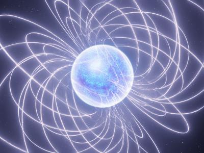 磁星的艺术印象,其中中子星发射由超强磁场中存储的能量驱动的无线电光,导致爆发,...