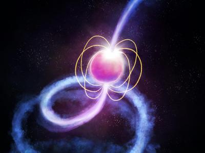 艺术家对磁星的构想,它被一个吸积盘包围,而磁星因广义相对论的影响而摇晃或进动。...