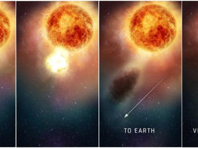 参宿四变暗可能是由于大量热物质喷射形成的尘埃云阻挡了表面星光(Credit: NASA, E...