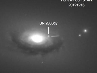 揭秘2006年发现的超级光亮的超新星SN 2006gy的爆炸起源(Credit: Fox et al 2015)...