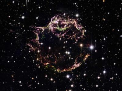 哈伯太空望远镜拍摄的仙后座A超新星残骸细致影像,这个球壳状...
