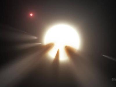 恒星KIC 8462852的不明信号有可能是一个族彗星正在绕着恒星运行,其偏心轨道半径...