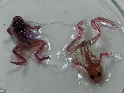 俄罗斯发现全身透明的变种青蛙