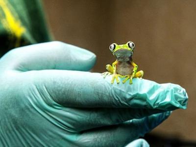 英国的动物园成功繁殖多只狐猴叶蛙。 狐猴叶蛙的体型细小。 (神秘的地球uux...