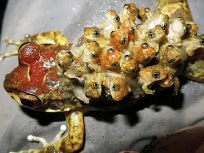 在布氏幽蛙背上的是它的多个宝宝 (神秘的地球报道)近日动物保护组织在社交网发...