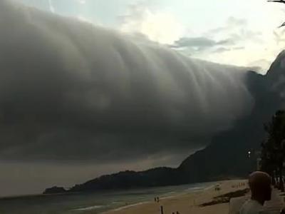 水平式龙卷风?巴西里约热内卢的圣康拉多海滩出现绵延上千公里的卷轴云 民众慌忙逃...
