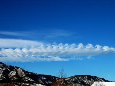 碎浪花云 这种碎浪花云是根据开尔文-赫姆霍兹原理形成的卷云。卷云是高云的一种...
