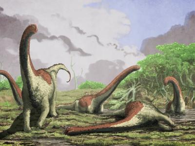 科学家指有至少一半恐龙属冷血动物,图为长颈蜥脚类恐龙。 兽脚亚目肉食恐龙品...