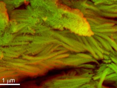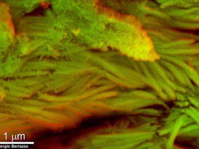 科学家发现7500万年历史的恐龙红细胞和皮肤残余物 图为对化石里发现的红细胞...