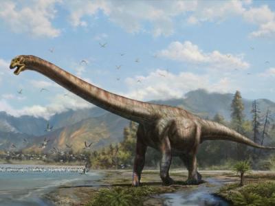 艺术家描绘的綦江龙。这个新种长颈龙于1亿6000万年前生活在现在的中国南方。(绘...