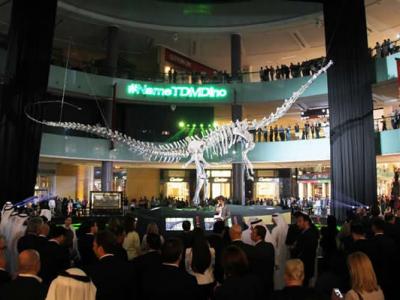 巨型恐龙骨骼化石“入住”阿联酋迪拜购物
