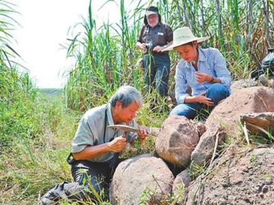 古生物学家在广西扶绥考察恐龙化石遗址