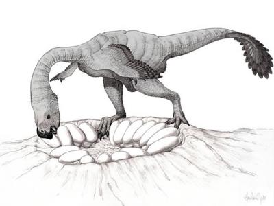 古生物学家在蒙古戈壁红砂岩中发现在巢窝中孵化的窃蛋龙骨骼化石 孵蛋恐龙妈妈...