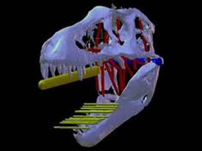 这是一具出土于美国南达科他州的霸王龙头骨三维肌肉结构重建效果图 据美国国家地...
