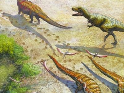 艺术家在距今已有2.15亿年的化石森林国家公园的环境中重建了Sonselasuchus cedrus。...