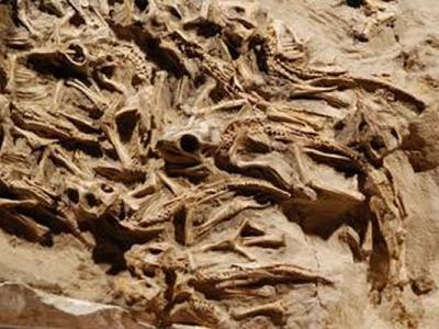 最新挖掘发现15只7000万年前幼年安氏原角龙化石,这些婴儿恐龙死亡时是聚集在巢穴...