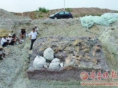 山东诸城恐龙化石发掘点惊现“龙立方”