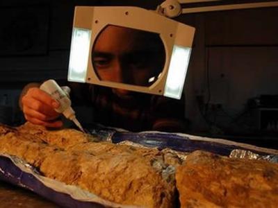 恐龙化石的发掘现场 于安哥拉发现的部分化石骨骼,这种恐龙可能曾是这个星球上...