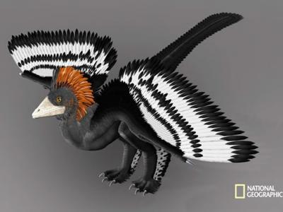侏罗纪troodontid Anchiornis huxleyi羽毛颜色的重建。(Michael A. Digiorgio)...
