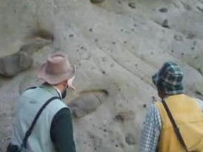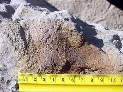 鸭嘴龙木乃伊身上的皮肤组织清晰可见 野外挖掘鸭嘴龙木乃伊 曼彻斯特大学的...