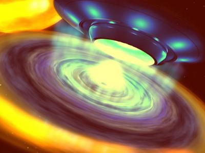 利用黑洞的引力作为独特的“万有引力镜”把宇宙飞船加速到近光...