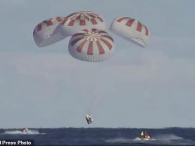 脱离国际空间站的美国最新型“龙-2”飞船已经成功在大西洋降落...