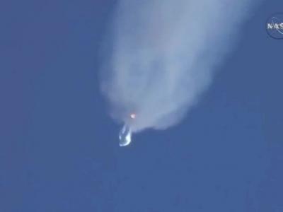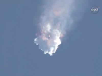 火箭解体的一刻 火箭的碎片散落大西洋 SpaceX周日尝试在美国佛罗里达州,发...