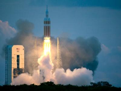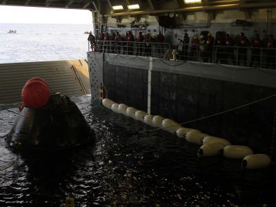 猎户座顺利降落,太空人拍掌叫好。 搭载猎户座的火箭在佛州升空。 搭载猎户...