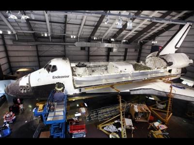 工作人员正维修奋进号 有民众有幸先睹为快 奋进号于2011年完成最后任务而退...
