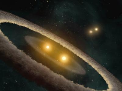 艺术表现恒星北落师门环绕盘中两个行星相撞的过程。图片来源:uux.cn托马斯·穆勒(...