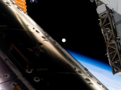 国际空间站外的地球和月球