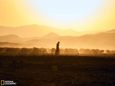 伊拉克一位牧羊人和他的羊群 (神秘的地球uux.cn)在伊拉克的哈拉布贾附近,一位...