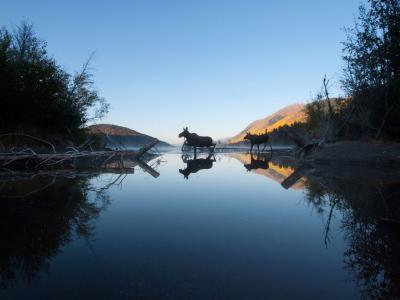 加拿大不列颠哥伦比亚省Ealue湖两头驼鹿