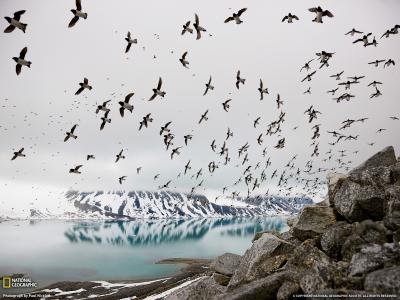 一大群短翅小海雀飞过斯瓦尔巴群岛 据新浪环球地理:一大群短翅小海雀(学名:A...