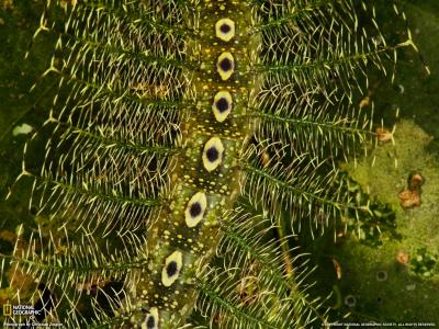 马来西亚婆罗洲一只毛毛虫 在马来西亚婆罗洲的砂拉越,一只毛毛虫的颜色与周围的...